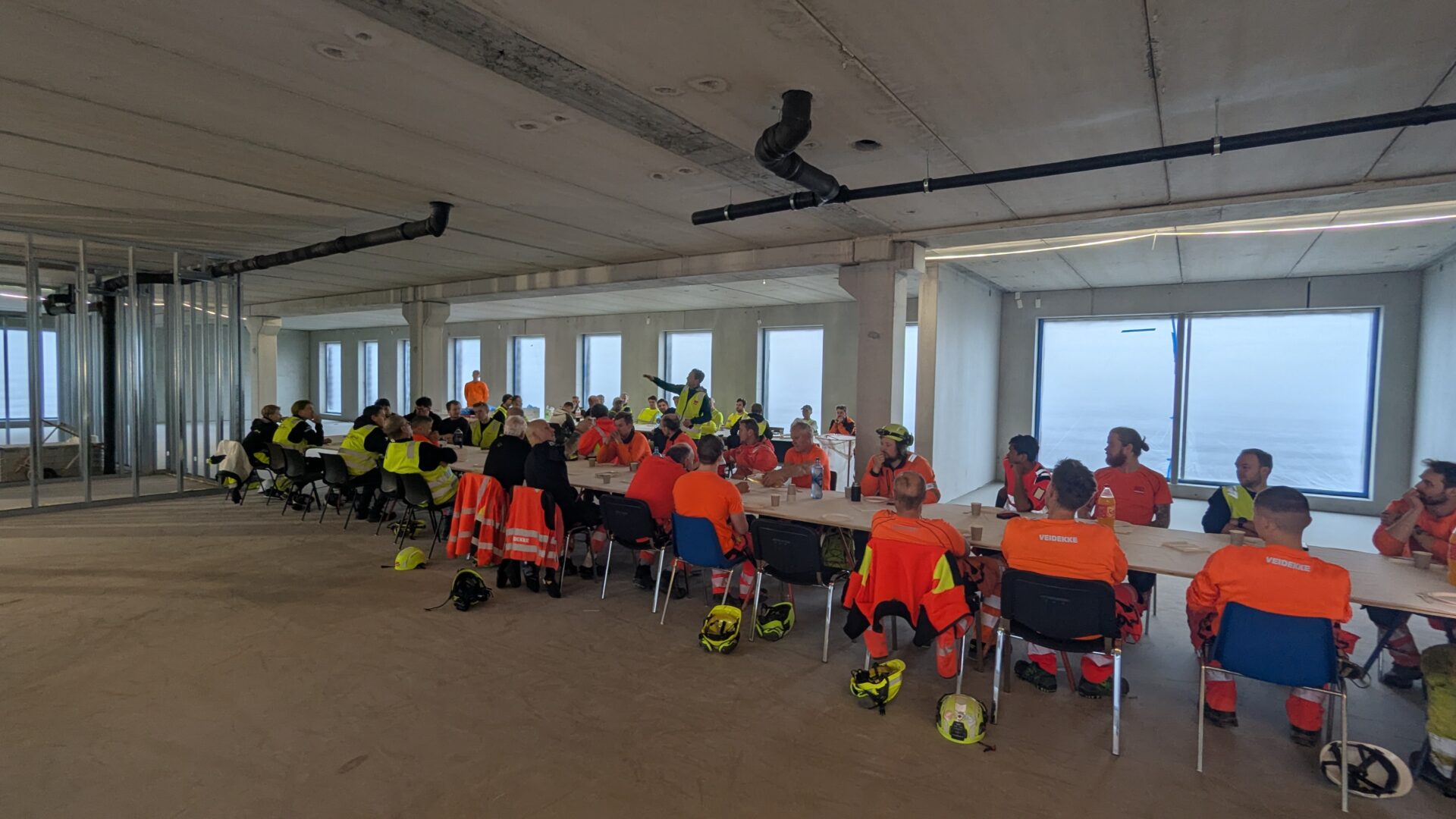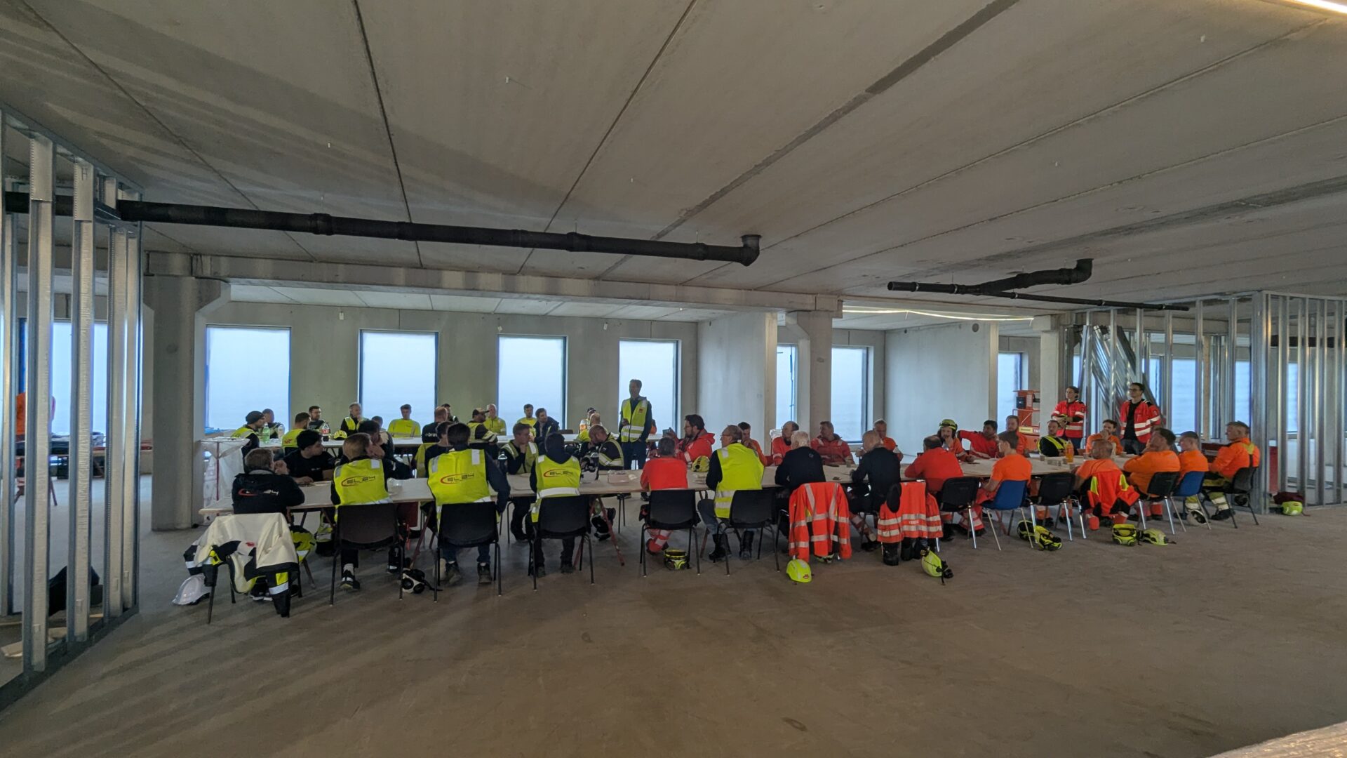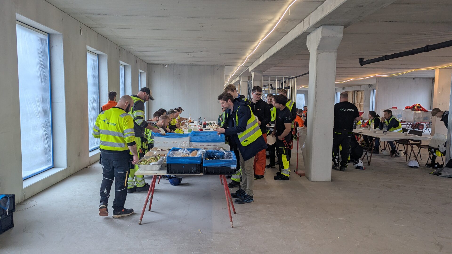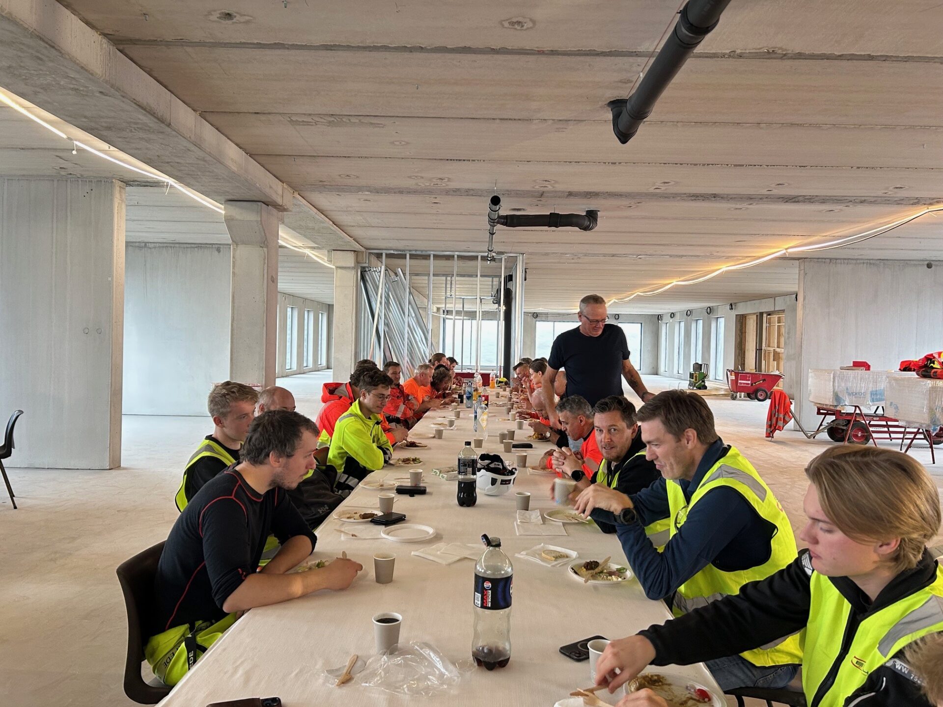 Kranselag på Holssletta 2. I midten av oktober nådde vårt signalbygg på Holssletta 2 toppen – og bygget er no tett!
